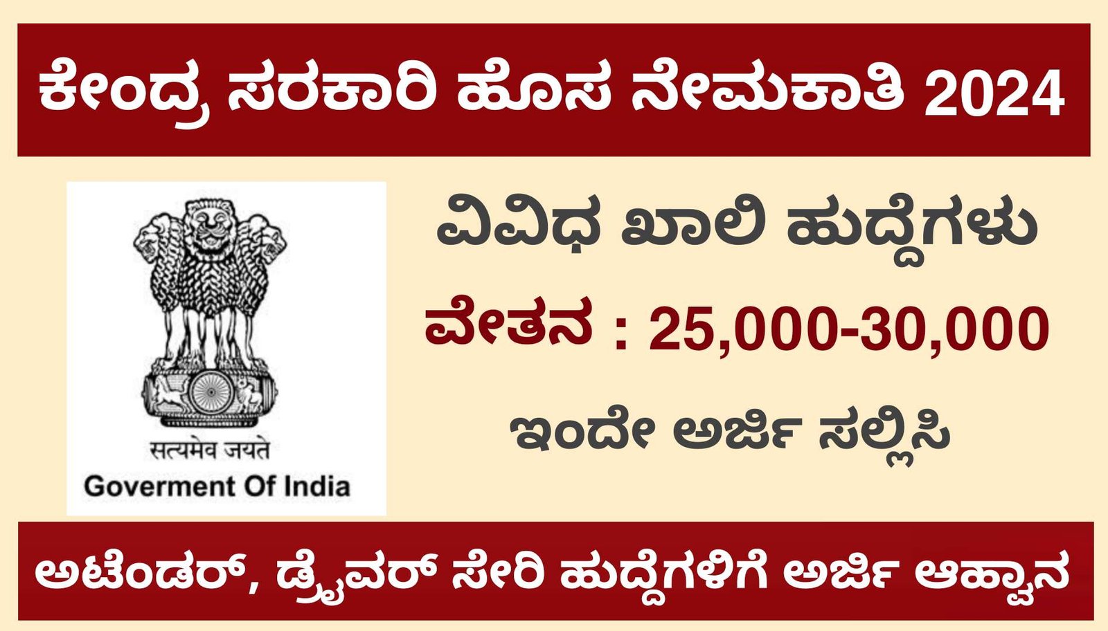 ಕೇಂದ್ರ ಸರಕಾರಿ ಹೊಸ ನೇಮಕಾತಿ, ಅಟೆಂಡರ್, ಡ್ರೈವರ್ ಸೇರಿ ಹುದ್ದೆಗಳಿಗೆ ಅರ್ಜಿ ಆಹ್ವಾನ – Central govt Jobs 2024
