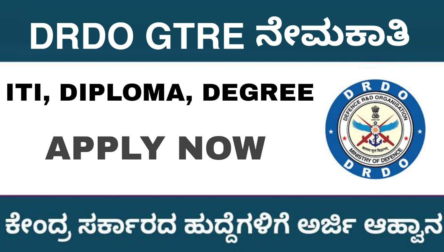 DRDO GTRE ನೇಮಕಾತಿ | DRDO GTRE recruitment 2025 : ಡಿ ಆರ್ ಡಿ ಓ ಜಿ ಟಿ ಆರ್ ಇ ಗ್ಯಾಸ್ ಟರ್ಬೈನ್ ರಿಸರ್ಚ್ ಎಸ್ಟ್ಯಾಬ್ಲಿಷ್ಮೆಂಟ್ ಅಧಿಕಾರಿಗಳು ಇತ್ತೀಚಿಗೆ ಕರ್ನಾಟಕದಲ್ಲಿ ವಿವಿಧ ಹುದ್ದೆಗಳಿಗೆ ನೇಮಕಾತಿಯನ್ನು ಮಾಡಲು ತನ್ನ ಅಧಿಕೃತ ಅಧಿಸೂಚನೆಯನ್ನು ಬಿಡುಗಡೆ ಮಾಡಿರುತ್ತಾರೆ. ಅಧಿಕೃತ ಅಧಿಸೂಚನೆಯ ಪ್ರಕಾರ ಒಟ್ಟು 150 ಹುದ್ದೆಗಳಿಗೆ ನೇಮಕಾತಿ ಮಾಡಲಾಗುತ್ತದೆ. ಆಸಕ್ತ ಅಭ್ಯರ್ಥಿಗಳು ಆನ್ಲೈನ್ ಮೂಲಕ ತಮ್ಮ ಅರ್ಜಿಯನ್ನು ಸಲ್ಲಿಸಬಹುದಾಗಿದೆ. ಆನ್ಲೈನ್ ಮೂಲಕ ಅರ್ಜಿ ಸಲ್ಲಿಸಲು ಕೊನೆಯ ದಿನಾಂಕ ಮೇ ಎಂಟು ಆಗಿರುತ್ತದೆ. ಆಸಕ್ತರು ಈ ದಿನಾಂಕದ ಮುನ್ನ ತಮ್ಮ ಅರ್ಜಿಗಳನ್ನು ಸಲ್ಲಿಸಬಹುದಾಗಿದೆ.