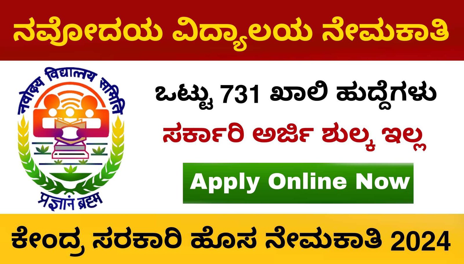 ನವೋದಯ ವಿದ್ಯಾಲಯ ಭರ್ಜರಿ ನೇಮಕಾತಿ, ಒಟ್ಟು 731 ಖಾಲಿ ಹುದ್ದೆಗಳಿಗೆ ಅರ್ಜಿ ಆಹ್ವಾನ