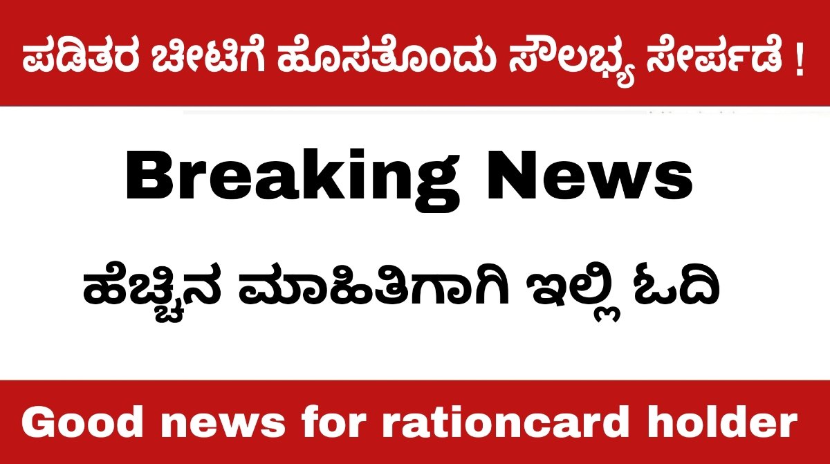 ಓದುಗರಿಗೆ ವಂದನೆಗಳು ಇಂದಿನ ಲೇಖನದಲ್ಲಿ ಉಚಿತ ಪಡಿತರ ಚೀಟಿಗೆ ಸೇರ್ಪಡೆಯಾದ ಹೊಸದಾದ ಸೌಲಭ್ಯದ ಬಗ್ಗೆ ಮಾಹಿತಿ ನೀಡುತ್ತೇವೆ. ಸಾಮಾನ್ಯ ಜನರ ಶ್ರೇಯೋಬಿವೃದ್ದಿಗಾಗಿ ರಾಜ್ಯ ಅಥವಾ ಕೇಂದ್ರ ಸರಕಾರ ನೂತನ ಯೋಜನೆಗಳನ್ನು ಜಾರಿಗೆ ತರುತ್ತಲಿವೆ.ಹಾಗೆಯೇ ಇಂದು ನಾವು ಅಂಥದೇ ಹೊಸತಾಗಿ ದೊರಕುವ ಸೌಲಭ್ಯದ ಬಗ್ಗೆ ನಿಮಗೆ ತಿಳಿಸುತ್ತೇವೆ.