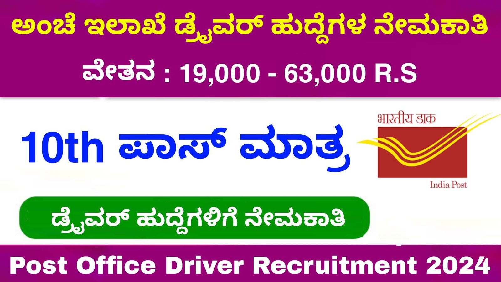 ಅಂಚೆ ಇಲಾಖೆಯಲ್ಲಿ ಡ್ರೈವರ್ ಹುದ್ದೆಗಳ ನೇಮಕಾತಿ 2024 – Post Office Driver Recruitment 2024