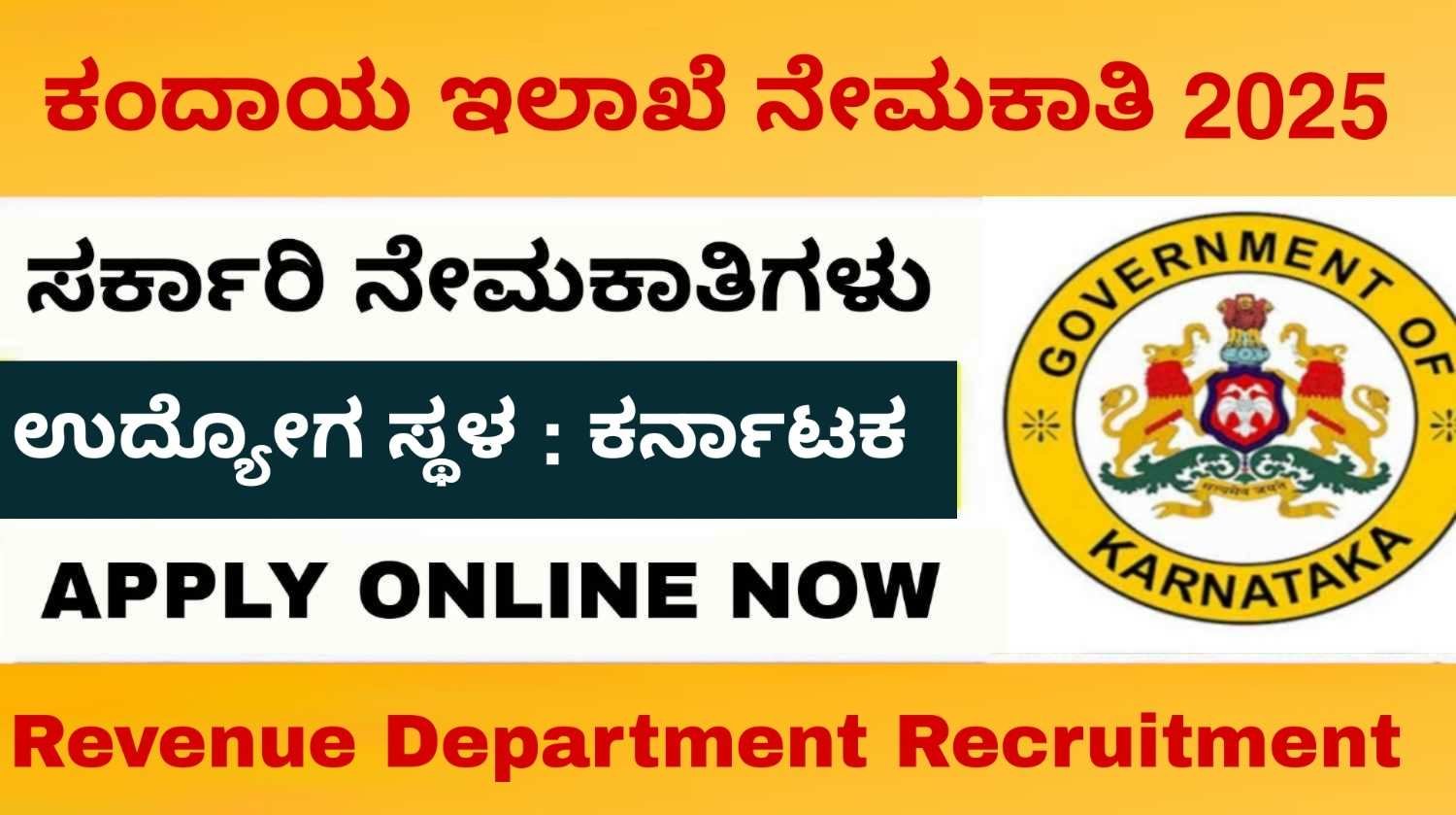 ಕರ್ನಾಟಕ ಕಂದಾಯ ಇಲಾಖೆ ನೇಮಕಾತಿ – Revenue Department Recruitment 2025 – ಕರ್ನಾಟಕ ಕಂದಾಯ ಇಲಾಖೆ ಇತ್ತೀಚಿಗೆ ಕರ್ನಾಟಕದಲ್ಲಿ ವಿವಿಧ ಹುದ್ದೆಗಳಿಗೆ ನೇಮಕಾತಿಯನ್ನು ಮಾಡಲು ತನ್ನ ಅಧಿಕೃತ ನೋಟಿಫಿಕೇಶನ್ ಅನ್ನು ಬಿಡುಗಡೆ ಮಾಡಿರುತ್ತದೆ. ಅಧಿಕೃತ ನೋಟಿಫಿಕೇಶನ್ ಪ್ರಕಾರದಲ್ಲಿ ಕರ್ನಾಟಕದ ವಿವಿಧ ಸ್ಥಳಗಳಲ್ಲಿ ಆಡಿಟ್ ಅಧಿಕಾರಿ ಸಹಾಯಕ ನಿಯಂತ್ರಕ ವಿವಿಧ ಹುದ್ದೆಗಳಿಗೆ ನೇಮಕಾತಿಯನ್ನು ಮಾಡಲಾಗುತ್ತಿದೆ. ಆಸಕ್ತ ಅಭ್ಯರ್ಥಿಗಳು ಆಫ್ಲೈನ್ ಮೂಲಕ ಅರ್ಜಿಯನ್ನು ಸಲ್ಲಿಸಬಹುದಾಗಿದೆ. ಆಫ್ ಲೈನ್ ಮೂಲಕ ಅರ್ಜಿ ಸಲ್ಲಿಸಲು ಕೊನೆಯ ದಿನಾಂಕ ಮೇ 5 ಆಗಿರುತ್ತದೆ. ಆಸಕ್ತರು ಈ ದಿನಾಂಕದ ಮುನ್ನ ತಮ್ಮ ಅರ್ಜಿಯನ್ನು ಸಲ್ಲಿಸಬಹುದಾಗಿದೆ. ಈ ಲೇಖನದಲ್ಲಿ ನಾವು ಇದರ ಬಗ್ಗೆ ಸಂಪೂರ್ಣ ಮಾಹಿತಿಯನ್ನು ನೀಡುತ್ತೇವೆ ಆದ್ದರಿಂದ ಕೊನೆಯವರೆಗೆ ಓದಿ.