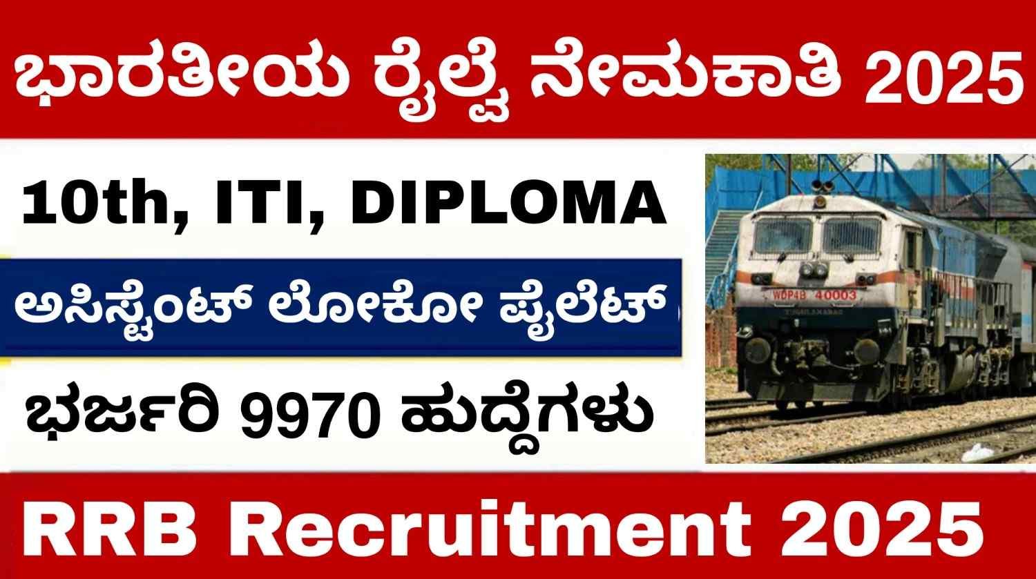 ರೈಲ್ವೆ ನೇಮಕಾತಿ 2025 – RRB recruitment 2025 : ಭಾರತೀಯ ರೈಲ್ವೆ ನೇಮಕಾತಿ ಮಂಡಳಿ ಇತ್ತೀಚಿಗೆ ಭಾರತದ ವಿವಿಧ ಸ್ಥಳಗಳಲ್ಲಿ ನೇಮಕಾತಿಯನ್ನು ಮಾಡಲು ತನ್ನ ಅಧಿಕೃತ ಅಧಿಸೂಚನೆಯನ್ನು ಬಿಡುಗಡೆ ಮಾಡಿರುತ್ತದೆ. ಅಧಿಕೃತ ಅಧಿಸೂಚನೆಯ ಪ್ರಕಾರ ಒಟ್ಟು 9,900 ಸಹಾಯಕ ಲೋಕೋ ಪೈಲೆಟ್ ಹುದ್ದೆಗಳಿಗೆ ನೇಮಕಾತಿ ಮಾಡಲಾಗುತ್ತದೆ. ಆಸಕ್ತಿ ಇರುವ ಅಭ್ಯರ್ಥಿಗಳಿಗೆ ಆನ್ಲೈನ್ ಮೂಲಕ ಅರ್ಜಿ ಸಲ್ಲಿಸಲಾವಕಾಶ ನೀಡಲಾಗಿದೆ. ಅರ್ಜಿ ಸಲ್ಲಿಸಲು ಕೊನೆಯ ದಿನಾಂಕ ಮೇ1 ಆಗಿರುತ್ತದೆ. ಆಸಕ್ತರು ಈ ದಿನಾಂಕದ ಮುನ್ನ ತಮ್ಮ ಅರ್ಜಿಯನ್ನು ಸಲ್ಲಿಸಬಹುದಾಗಿದೆ. ಈ ಲೇಖನದಲ್ಲಿ ನಾವು ಇದರ ಬಗ್ಗೆ ಸಂಪೂರ್ಣ ಮಾಹಿತಿಯನ್ನು ನೀಡುತ್ತೇವೆ ನೋಡಿ.