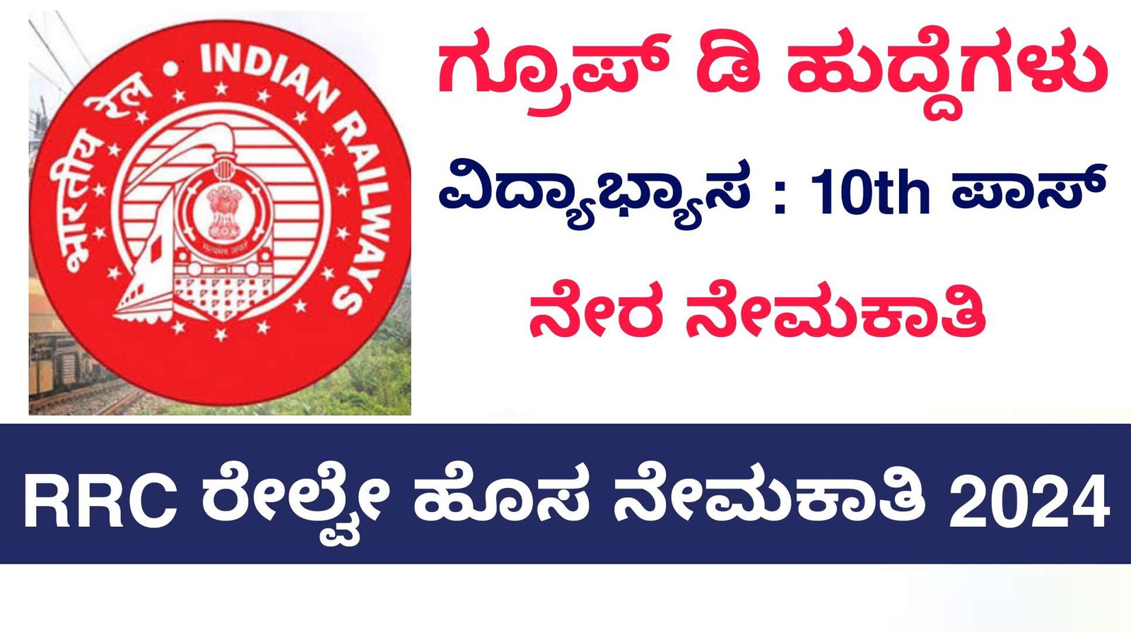 ಹುದ್ದೆಗಳ ಹೆಸರು : ಗ್ರೂಪ್ ಡಿ ಹುದ್ದೆಗಳು
